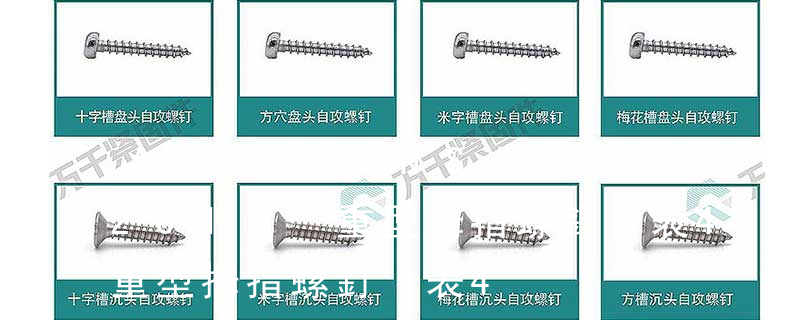 1.機螺釘 2.自攻螺釘 3.鉆尾螺釘 4.墻板釘 5.纖維板釘 6.木螺釘7.六角木螺釘 8.不脫出螺釘 9.組合螺釘 10.微型螺釘 11.家具螺釘 12.電子螺釘 頭型 :1.六角頭(hexagon head) 2.六角頭法蘭面(hexagon head