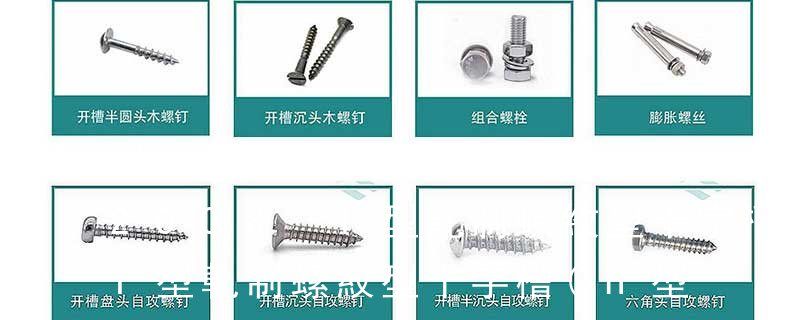④頭型 :用字母來表示頭型的種類,可參看前文常用螺釘頭型分類。 ⑤牙型/尾型 : 用字母來表示牙型/尾型的種類,可參看前文“常用螺釘牙型/尾型分類”。 ⑥槽型 :參看前文“我司常用螺釘槽型分類”,十字槽或無槽(如沖六角頭螺